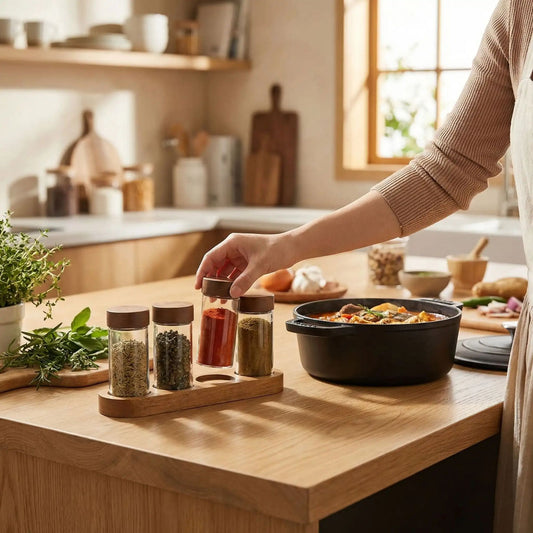 • Pots à Épices | Aroma4™ en Verre sur Support Bois